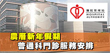 農曆新年假期普通科門診服務安排 |