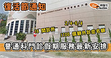 普通科門診假期服務最新安排 |