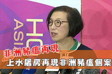 | 上水屠房一個豬隻樣本驗出非洲豬瘟病毒,食物及衞生局局長陳肇始宣布,該屠房所有豬隻會被銷毀,屠房也會進行全面清洗和消毒,今晚起暫停運作,直至完成消毒工作為止。 陳肇始晚上就有關事宜會見傳........ | |