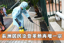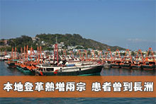 | 本港再增一宗本地登革熱個案,男患者居於長洲,現時情況穩定。 66歲男患者上周六發病,先後兩次到長洲醫院求醫,昨日入住東區尤德夫人那打素醫院。 他居於長洲龍仔村,潛伏期內一直逗留島........ | |