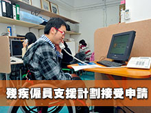 | 社會福利署宣布,第22期殘疾僱員支援計劃明日起接受申請,10月19日截止。 計劃2013年推出,旨在支援殘疾人士就業。僱主可為殘疾僱員申請一筆過資助,以購置輔助儀器或改裝工作間,協助他........ | |