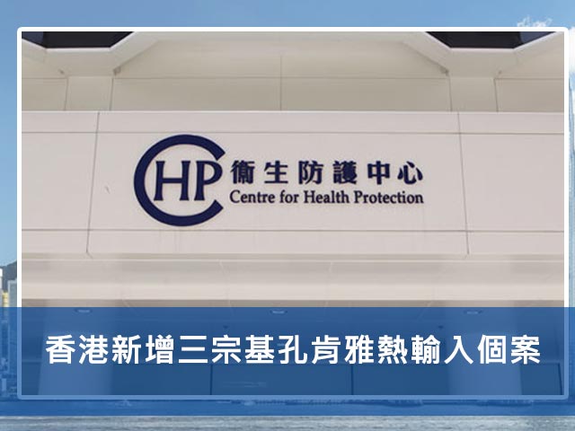 香港衛生署衞生防護中心通報,本港近日錄得三宗基孔肯雅熱的新增輸入個案,所有患者情況穩定,並已在醫院接受治療。