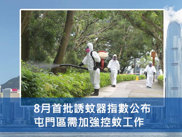 8月首批誘蚊器指數公布:屯門區需加強控蚊工作
