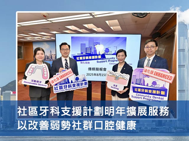 香港政府宣布,社區牙科支援計劃將於明年1月1日擴大服務範圍,旨在進一步改善有經濟困難的弱勢社群的口腔健康。此計劃將取代關愛基金的長者牙科服務資助項目,並提供更全面的牙科服務。