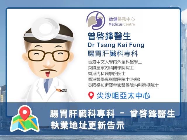【腸胃肝臟科專科 】曾啟鋒醫生執業資料更新告示