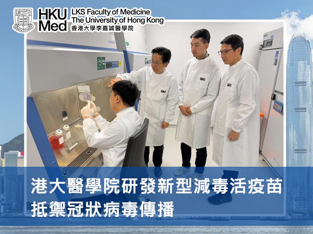 港大醫學院研發新型減毒活疫苗 抵禦冠狀病毒傳播